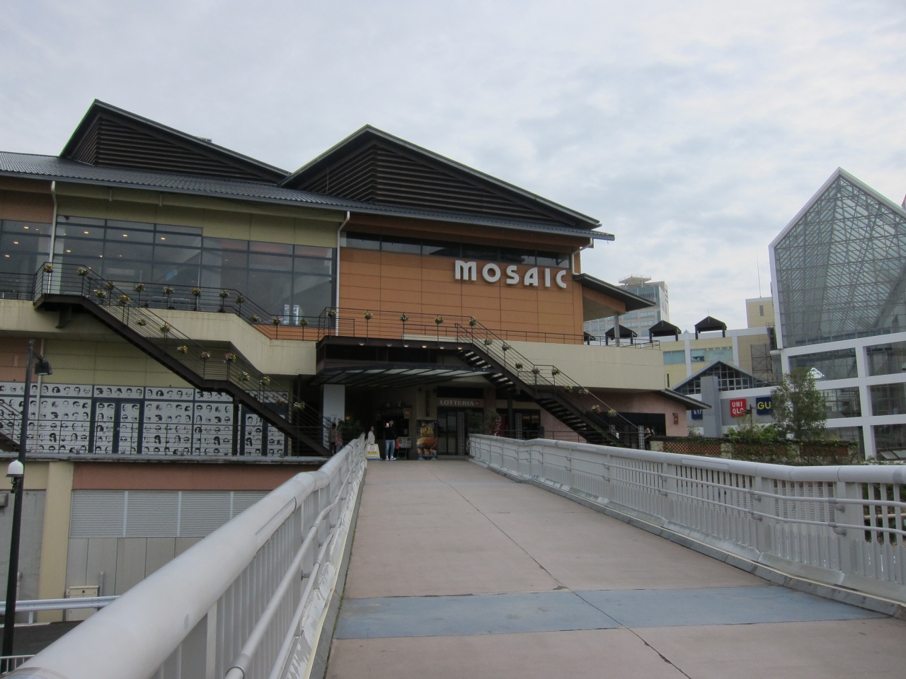 海沿いの飲食店のあるモザイクとショッピングが楽しめるハーバーランドが一緒になってUMIEと言う複合施設になっているようですね。駅に直結してるので、雨の日でも大丈夫。モザイクにはたくさんのレストランがあります。夜景が綺麗ですよ。