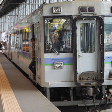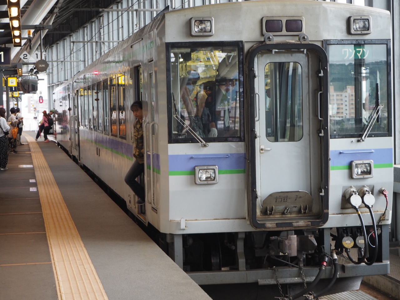 旭川から美瑛観光で富良野線(旭川ー美瑛)を利用しました。往路は旭川発で午前8時40分台の列車、復路は美瑛発の午後3時30分台の列車です。利用したのが日曜日ということもあり、観光客の利用も多いようでした。往復とも利用率は5、6割ほどでした。2両の車両のデイーゼルでのどかな雰囲気がありました。車窓は旭川を離れると丘陵地や農地が広がり、遠くには大雪山系の山並みが見れるというよい景観でした。