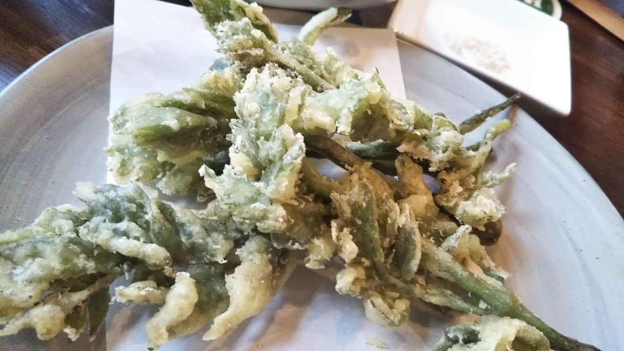 てんぷらは油っぽくなくサクッとした歯ごたえに、ほろ苦甘い。