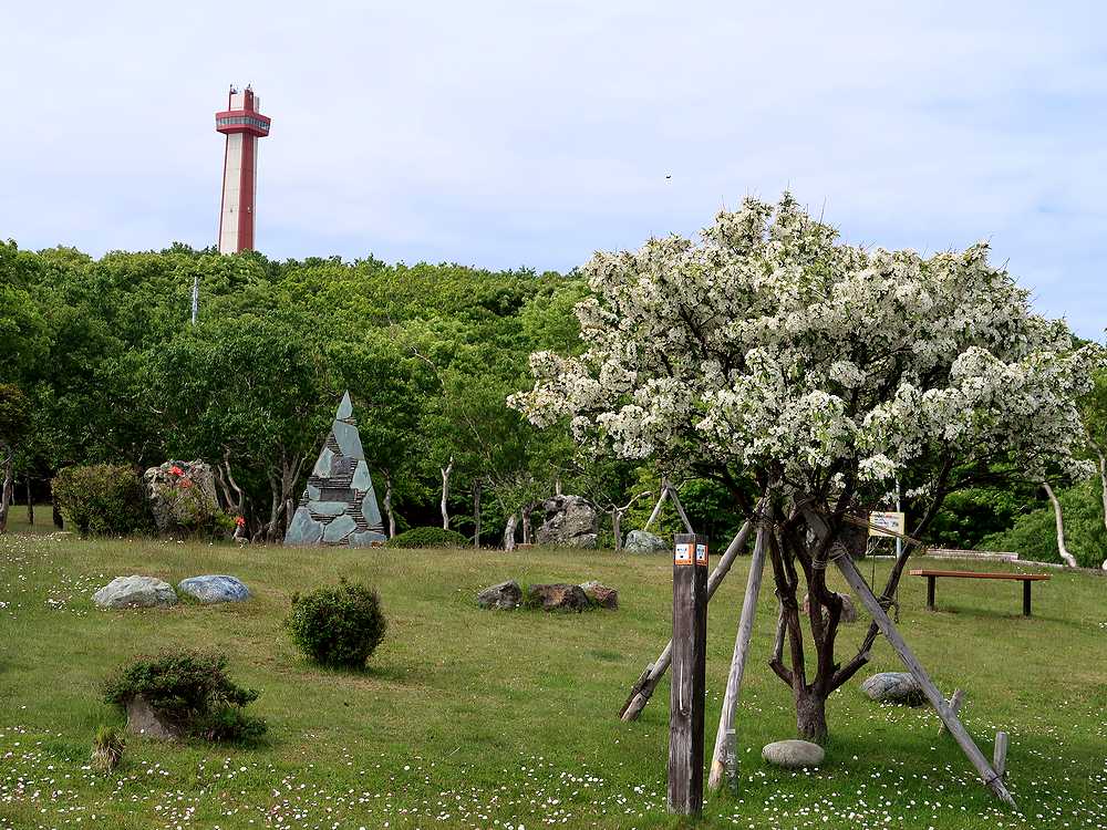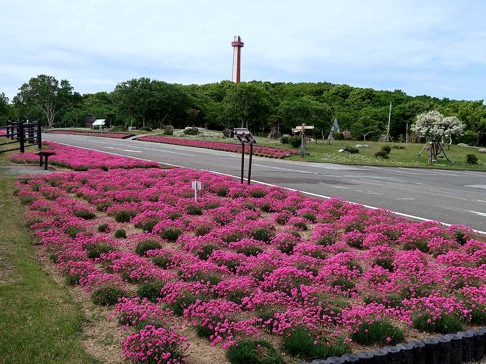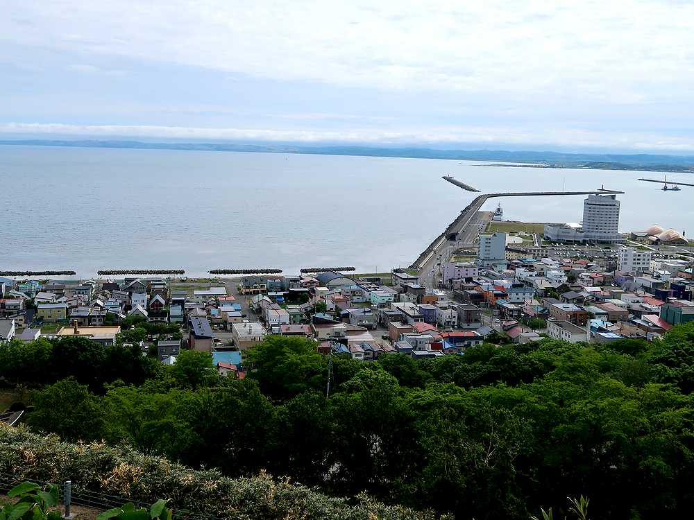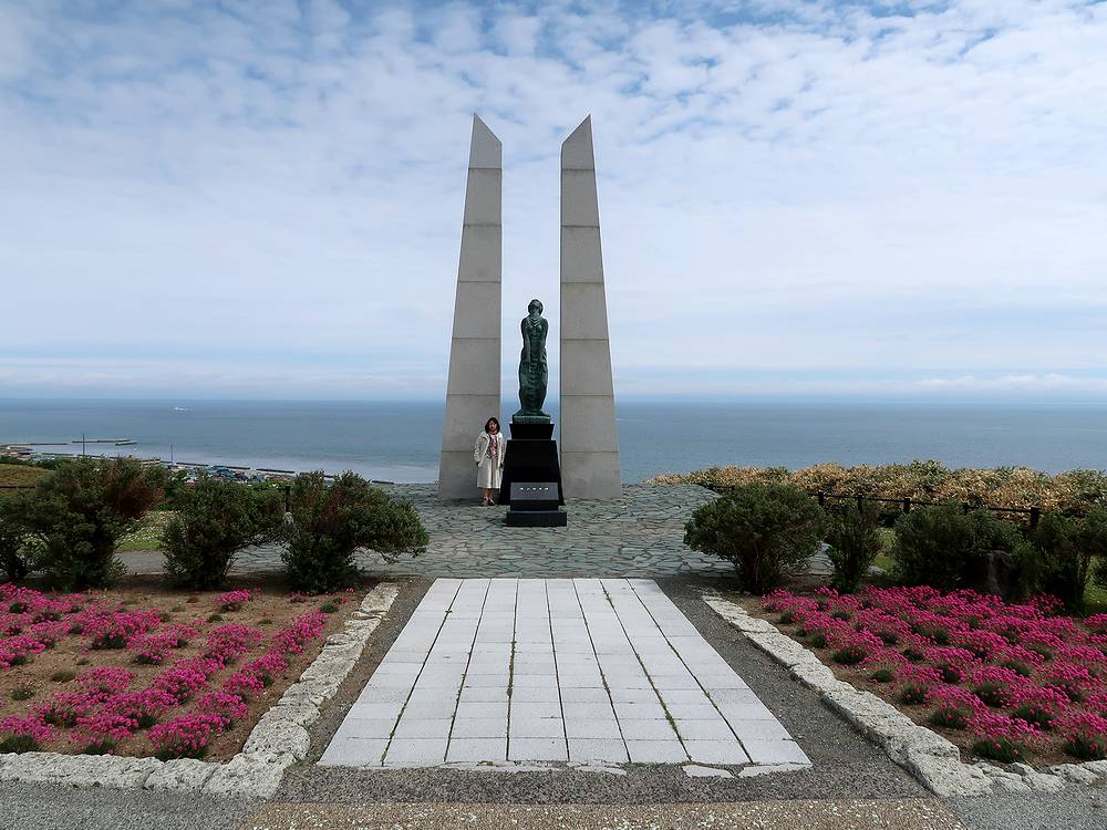 利尻島・礼文島旅行最終日の朝、稚内温泉近くの宿からレンタカーで訪れました。かなり高台にあるので、街から歩いてくるのはきつそうです。ちょうど花壇にはアルメリアの花がきれいに咲いていて、氷雪の門の白と海と空の青とのコントラストがきれいでした。朝早い時間は観光客も少なく、駐車スペースもガラガラで、ゆっくり見学ができます。眼下には稚内の市街地がきれいに見える、気持ちのいい公園でした。