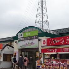 上下線とも駐車場を囲むようにトイレ・売店などの施設が建っています。