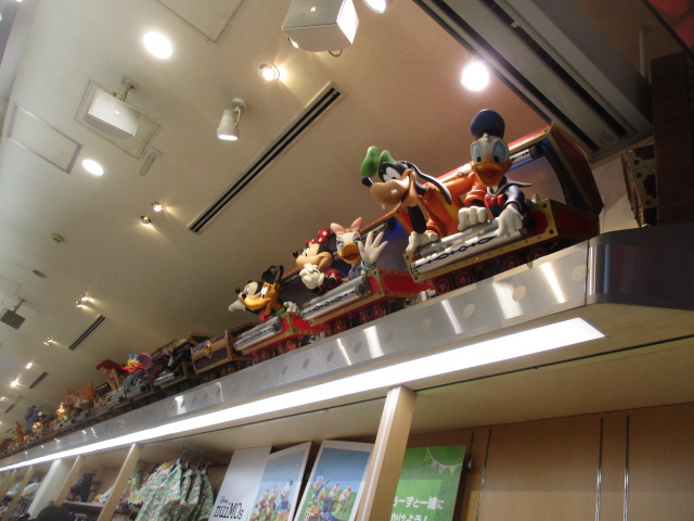 心斎橋筋商店街にあるディズニーストアです。ディズニーランドで買うよりもずっとお得です。入口入って、天井の下の上の棚にズラっとディズニーのキャラクターが並んでいて、このディスプレイはなかなか楽しめていいですね。