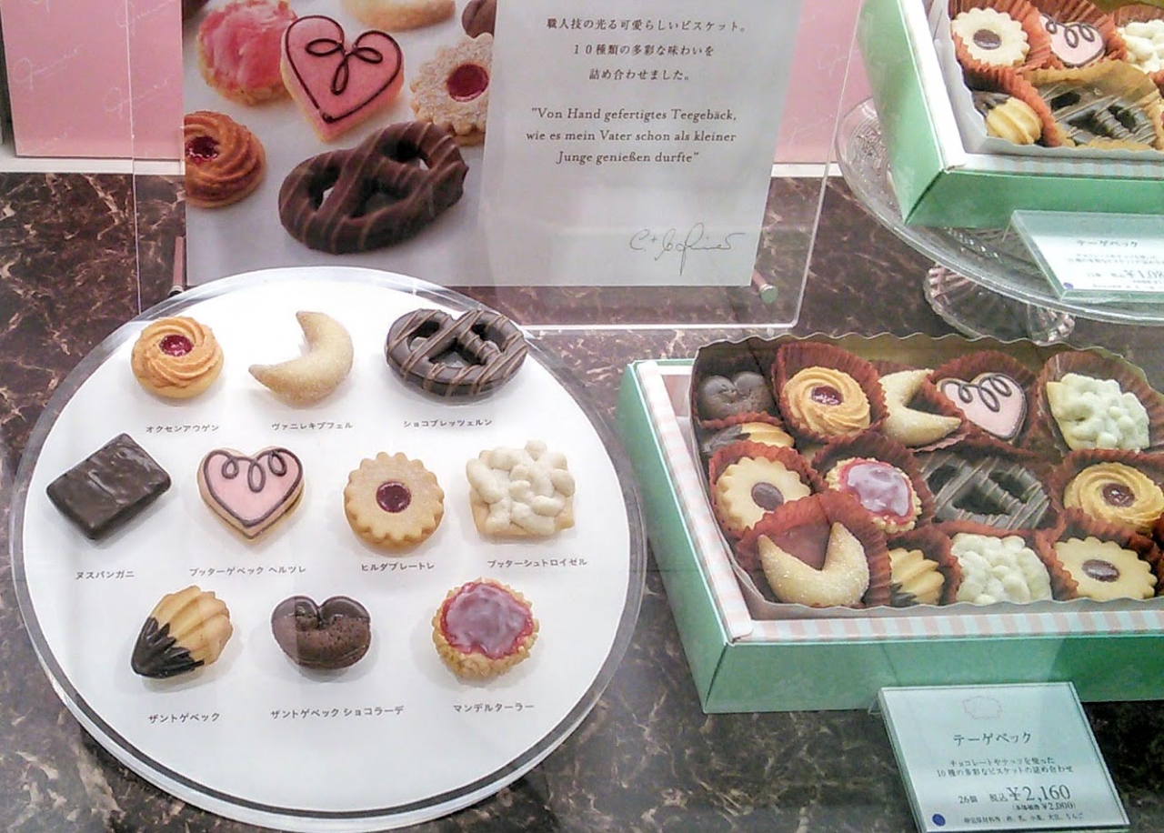ピンク色のストライプが愛らしい、ドイツの黒い森地方にある老舗菓子店の東京店です。黒い森名物のさくらんぼのボンボンが一番のおすすめのようですが、バウムクーヘンからチョコレートまで品ぞろえは豊富です。ドイツ伝統のクッキーが10種類楽しめる詰め合わせを購入、ほろほろやわらかく、コーティングのチョコレートもおいしく、見た目もキュートなので、世代を問わずお勧めできる手土産です。