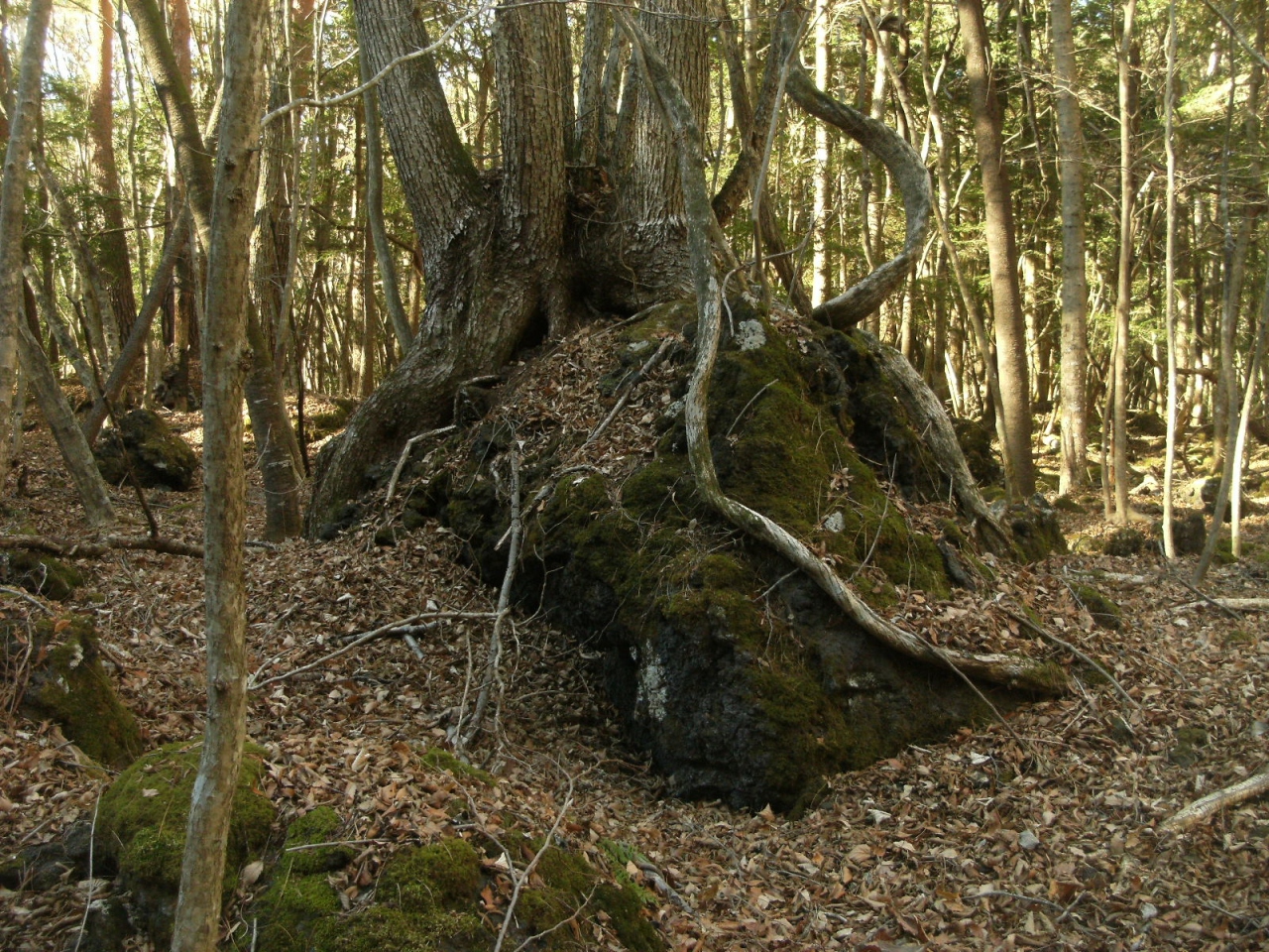 紅葉台から下山して竜宮洞穴バス停まで、ほんの一部を歩いただけですが、溶岩を抱えるようにして樹木が生えていたり、溶岩洞穴があったりして、ふつうの森林とは違う独特の景観を楽しむことが出来ました。道標がしっかり整備されていますし、平坦で道幅も広く歩きやすいです。