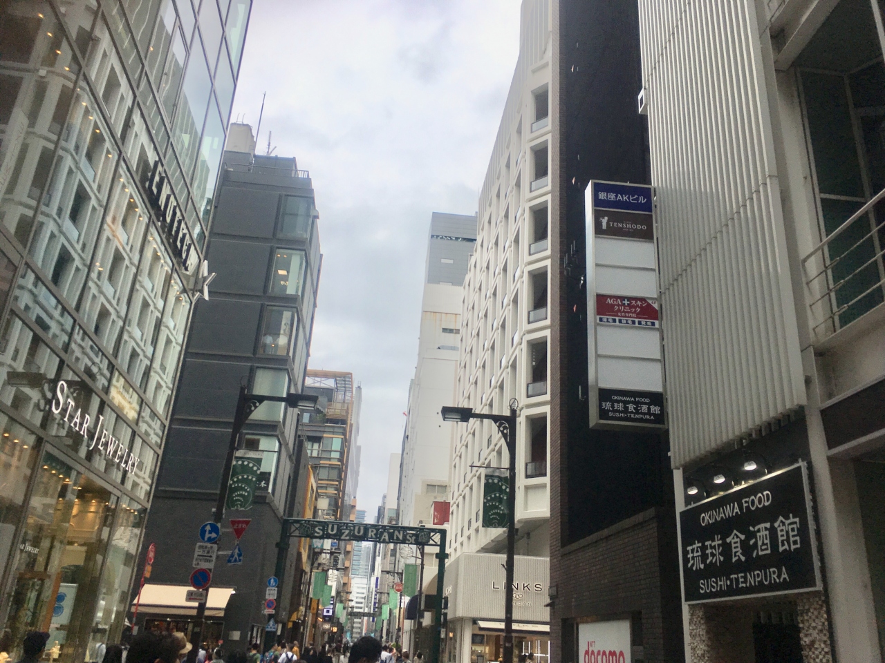 たまたまアマンドの前から銀座中央通りから1本有楽町寄りの通りを歩き始めたら、街灯の下にすずらんの花の看板が通り沿いについているのに気がつきました。40年以上前からよく歩いているけど、今まで通りの名前を意識していなかった。ユニクロやタサキの裏の出入り口もあり、長野のアンテナショップもあります。