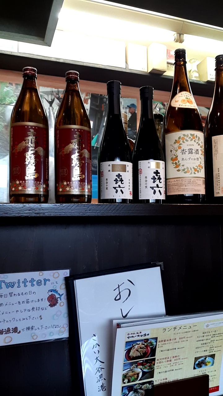 カウンターの上には、赤霧島などの中々手に入らない銘柄の焼酎や、日本酒が並んでいましたし、ちょっと高級な雰囲気を醸し出していました。