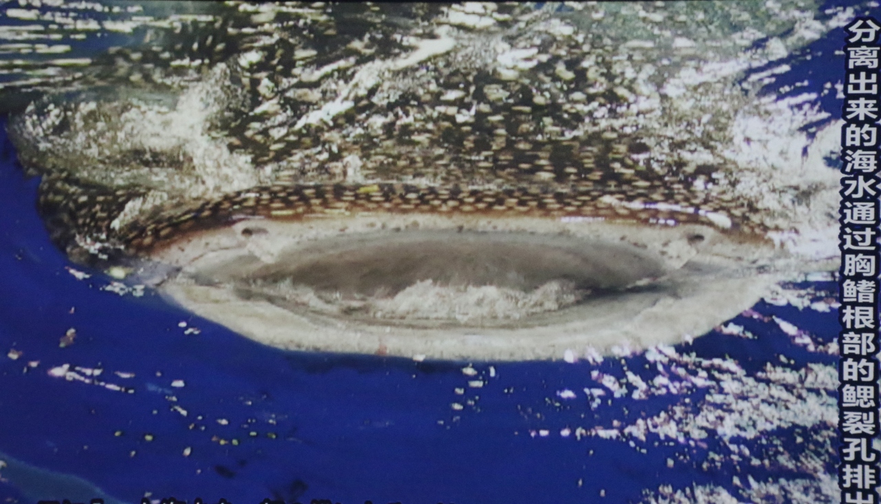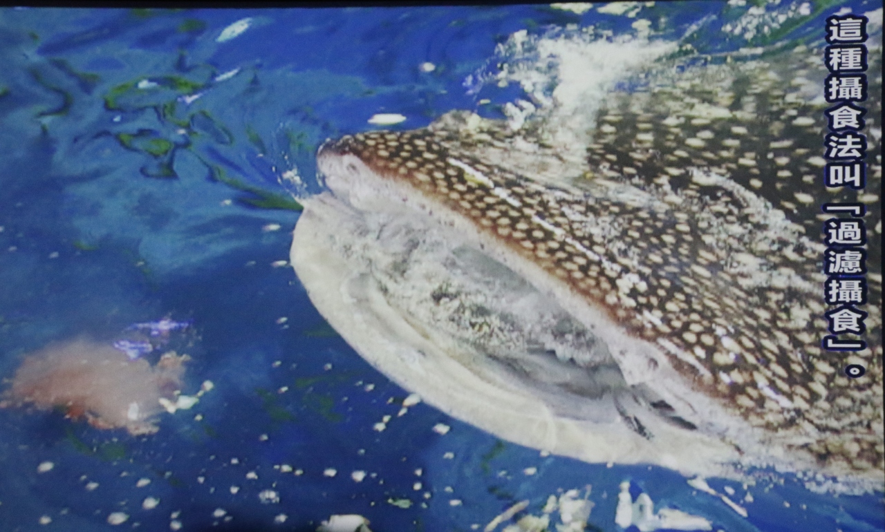 ジンベイザメのお食事タイム、大量のオキアミを丸呑みする姿が素晴らしい。