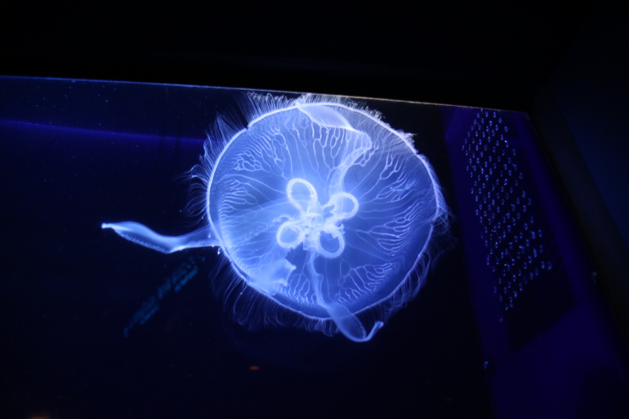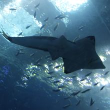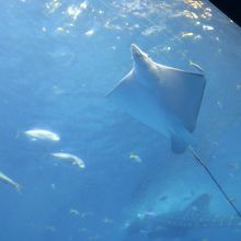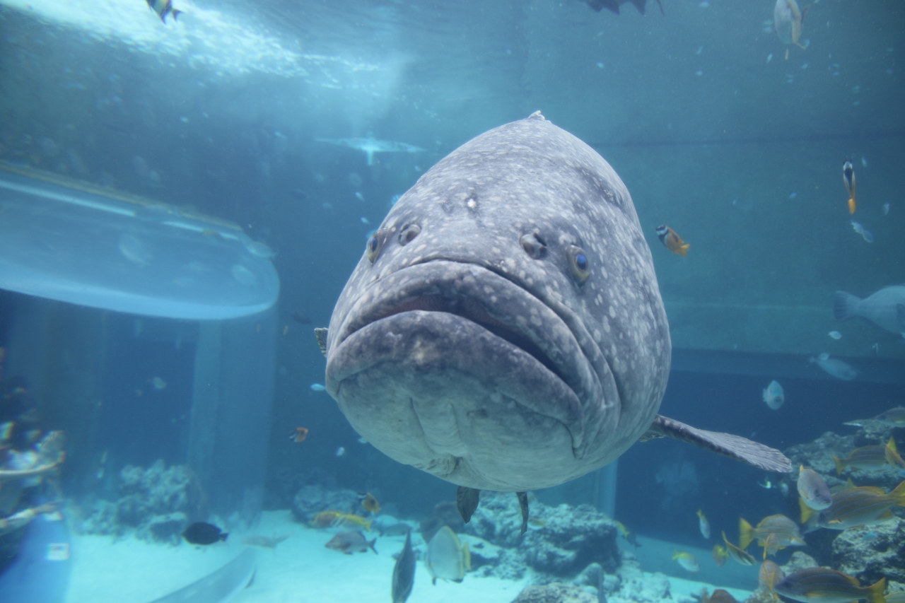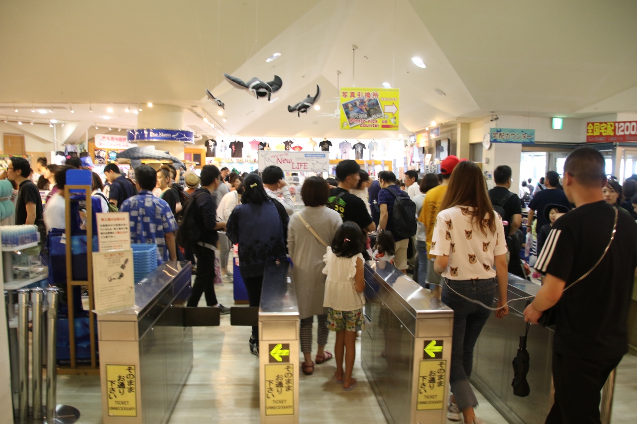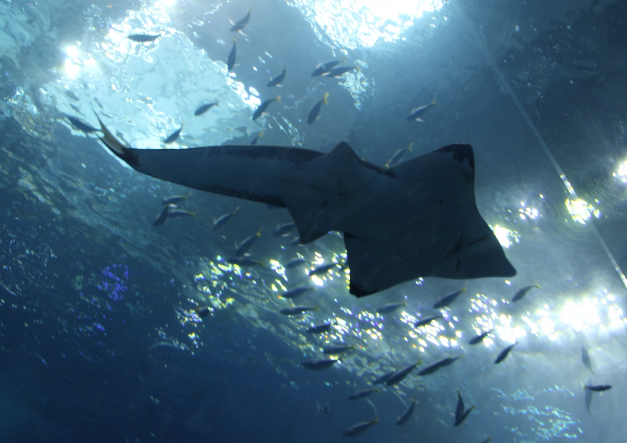 ジンベイザメのお食事タイム、大量のオキアミを丸呑みする姿が素晴らしい。大水槽のジンベイザメが一番目玉の水族館です。オキアミを丸呑みする姿を水槽の真上にあるカメラから映し出すモニター展示がとても斬新です。