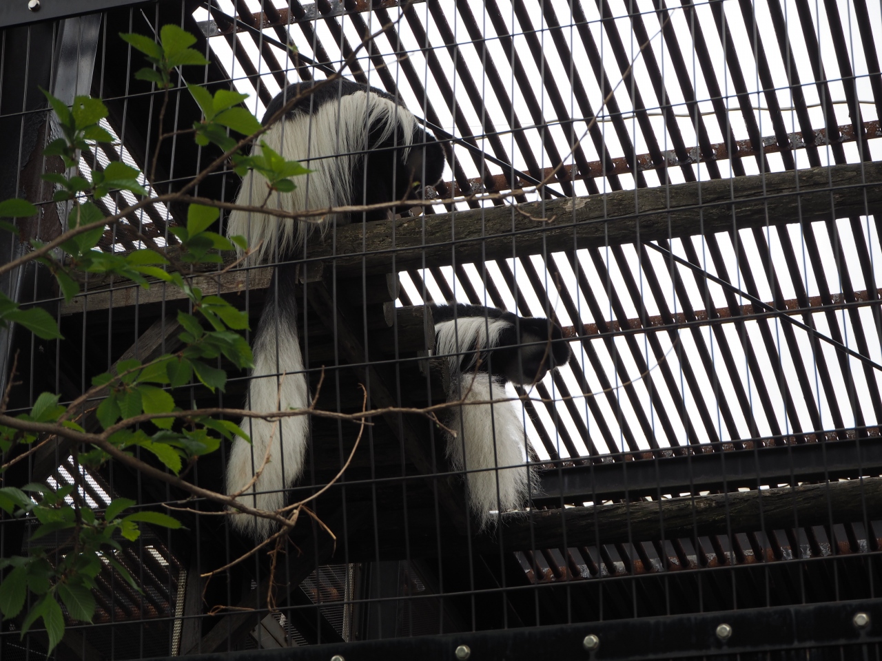 旭山動物園のさる舎です。旭山動物園内にはオラウンターンやチンパンジーなどのよく知られたさるもいますが、ここさる舎ではめずらしいさるもいました。長いひげのようにみえて、尾っぽの長いオナガザル(アビシニアン・コロプス)がいました。珍しいさるなので、ゆっくりとじっと見ていました。