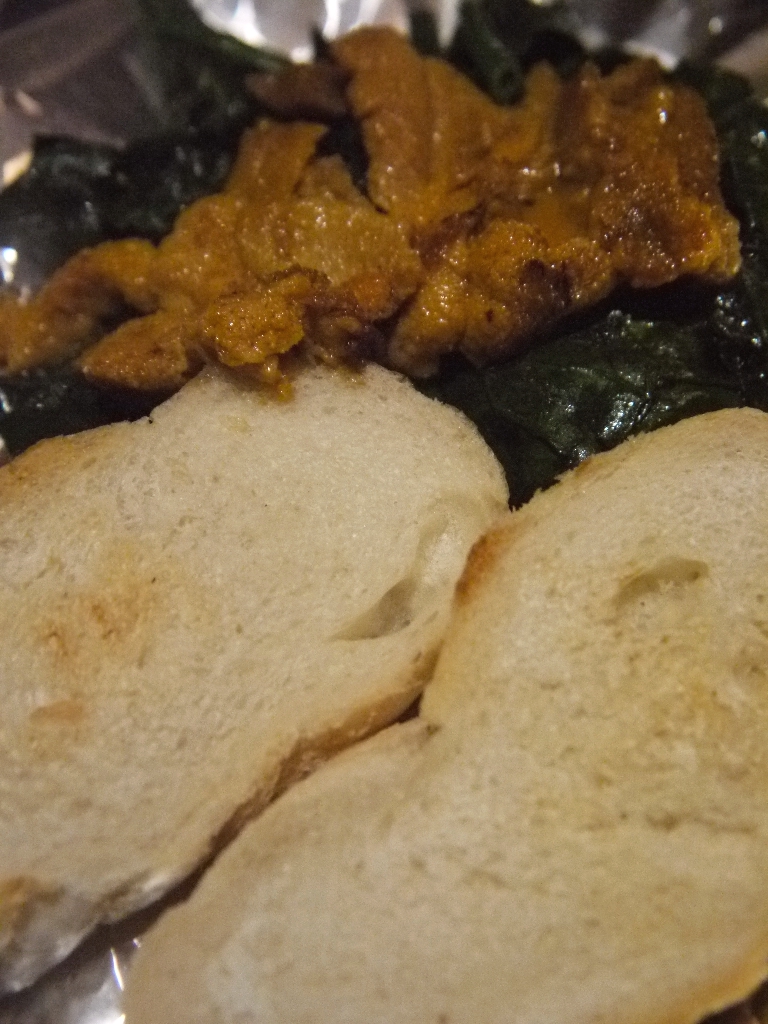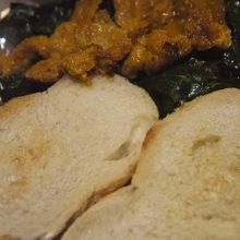 簡単にいうと、ホウレン草にウニをたっぷりトッピングし、パンのスライスを添えたもの。