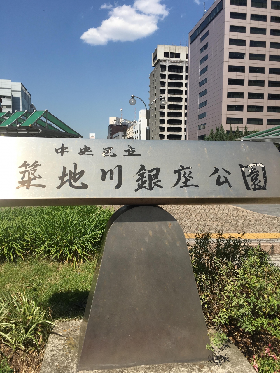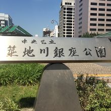 築地川を埋め立てた後に首都高速道路が作られ、その上にこの公園があります。