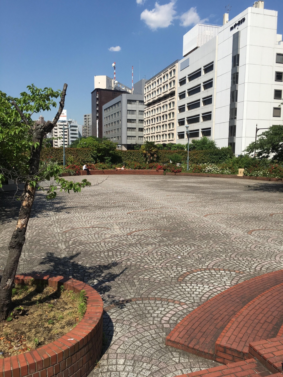 築地川を埋め立てた後に首都高速道路が作られ、その上にこの公園があります。
