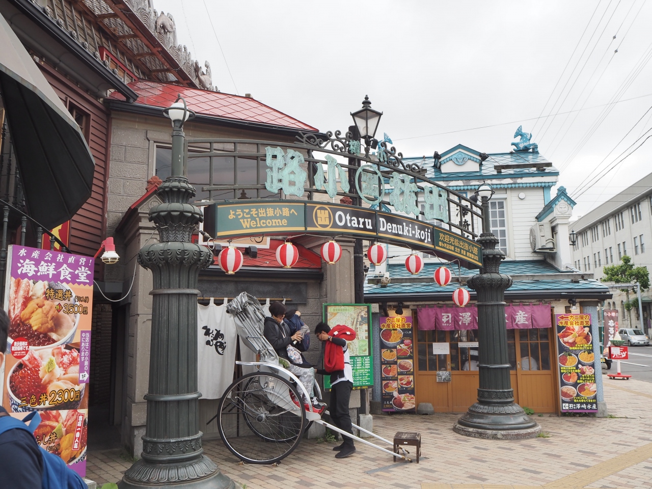 小樽駅から小樽運河へと歩いていき、運河のすぐ手前にあるお店の集まりです。レトロな木造の櫓がよく目立ちます。お店はこじんまりとしたものが多いです。店は鳥の半身揚げの店や、海鮮丼の店や、ジンギスカンの店などもあります。それぞれ人気のある店のようです。昼過ぎに立ち寄ったので、既に昼ご飯は食べていたので、ソフトクリームを食べました。ぶらぶらと運河沿いを歩いていきました。