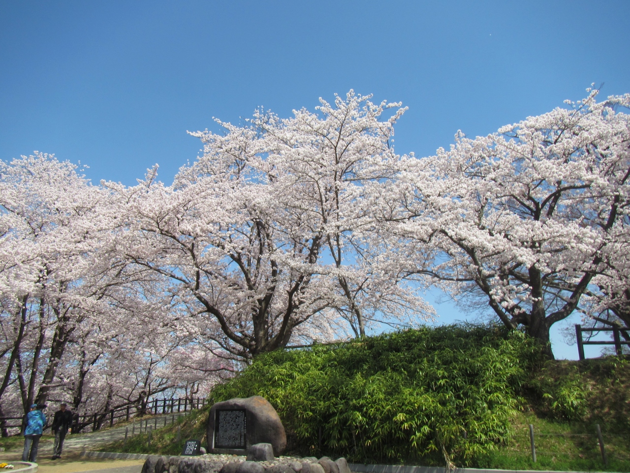 もっとも、西側でも地形などに城の名残を留めているのかもしれませんが、整備されてやや分かりにくく、天童城にまつわるものとしてはっきり分かるのは、展望台のある頂上部直下の花壇エリアの前の解説石碑がやっとです。