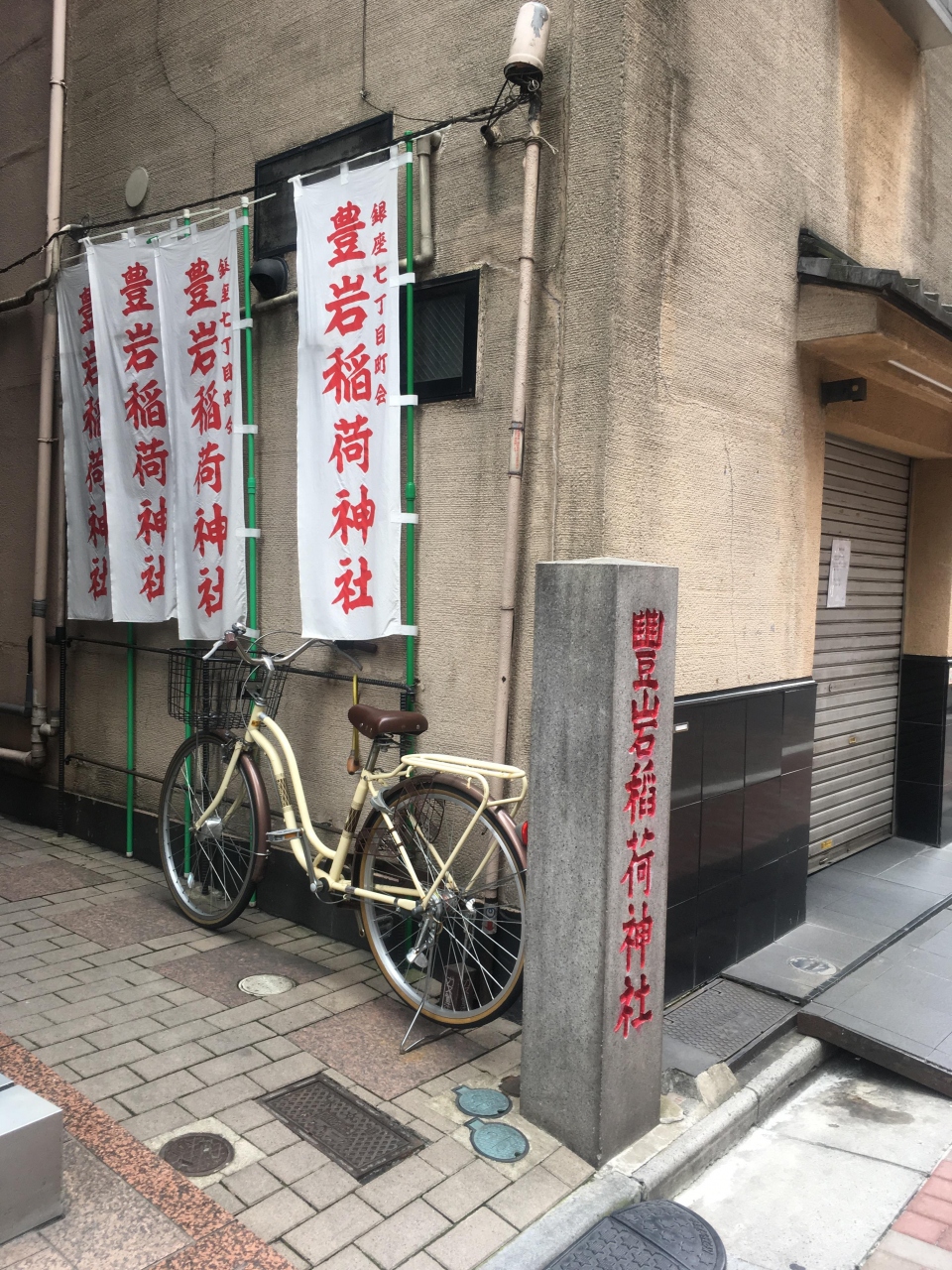 7丁目で銀座に出るといつも通る通りを歩いていたら、たまたまお参りをしている親子を見かけたので、立ち寄ってみた。本当に狭い路地を進むと二匹の狐が出迎えてくれ、大きな鈴もありました。縁結びで有名というのは後から知りました。どおりで私の後ろに若い女性のお一人様が二組いたわけです。
