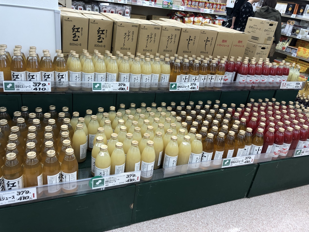 りんごジュースやジャム、味噌、野沢菜、丸山珈琲…なんでも揃います。