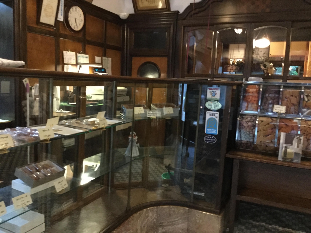 京都の寺町通り、市役所の北方面にある、老舗の洋菓子店です。店の看板も入り口も、歴史の香りが溢れています。昭和というよりは大正浪漫でしようか、お菓子の種類もクッキーのようなロシアンケーキと夏蜜柑の器のゼリーとシンプルです。何年もずっとこのままのスタイルで、そしてこの雰囲気が好きで小さい店ですが尋ねて来るお客さんがいつもいます。