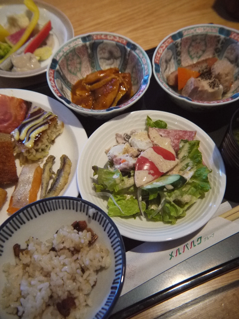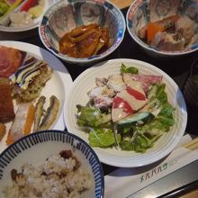 サラダ、焼き魚、スクランブルエッグ、おかゆ、豆腐等、茶碗蒸し、パン、定番の朝食メニューから、バーニャカウダ、ポトフ、鶏肉のカレー煮込み等、ランチのメニューにしてもいいのでは、といった料理も提供。