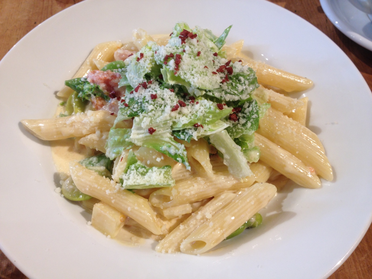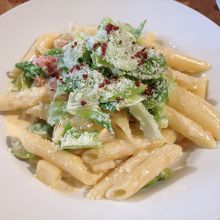 休日に遠出して訪れました。ランチタイムで、お客さんで賑わっていました。春野菜のクリームソースペンネ(1380円)、チコマ(500円)、アムール(600円)とコーヒー(500円)をオーダーしました。チコマは、コーヒー、チョコレート、マスカルポーネの味が味わえるケーキでした。アムールは、イートイン限定の商品ということもあって、繊細なムース系のケーキでした。ケーキはどちらも美味しかったですが、予想外に食事が美味しかったです。