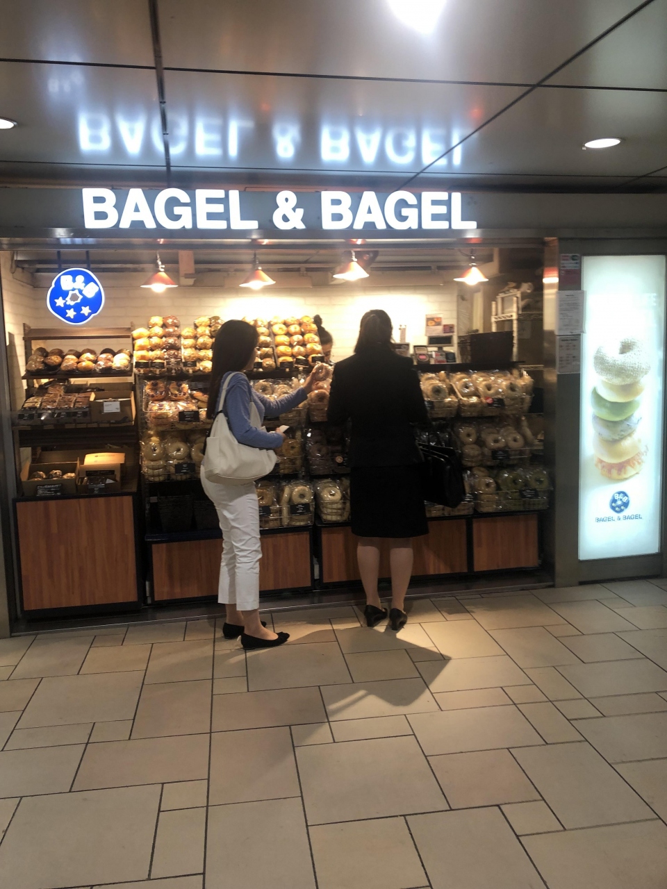 表参道の駅構内にベーグル&ベーグルのショップが入っています。