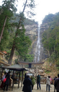 古びた石段を下っていくと、那智の大滝が真正面に見えます。(帰りには登らなくてはなりませんが。)この滝を本体とする飛龍神社があります。落差133メートル。日本三大名瀑。複数ある那智の滝の一の滝と呼ばれるらしいです。とても高いところから落ちていますが、水量は雪解け水がないので,行ったときは少ないと思いました。