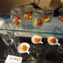 ティータイムのデザートはちょっと微妙な感じですが、沖縄ならではのマンゴージュースが飲めます。
