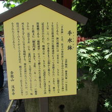 東京メトロ浅草駅から雷門(風雷神門)をくぐって仲見世通りを進み宝蔵門から浅草寺本堂前を右折し浅草神社の先の二天門前にある手水鉢に歩いて7分ぐらいで着きます。手水鉢は参拝の前に身を清める為の水を蓄える鉢のことです。この手水鉢は安永6年(1777年)に寄進されてますので関東大震災や第二次世界大戦の東京空襲に耐えた歴史ある貴重なものです。今は使われていないが、江戸時代の人々はこの手水鉢で手を清めて浅草寺や浅草神社に参拝していたと推察されますので当時の形状を保っていますのでじっくり眺めることお勧めします。