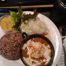 注文したのは温玉付のバターチキンカレーとフォカッチャ自家製ロースハム&カマンベール