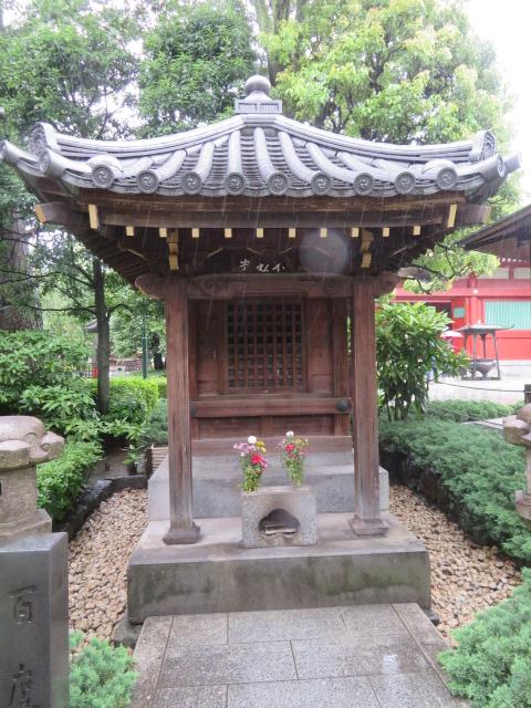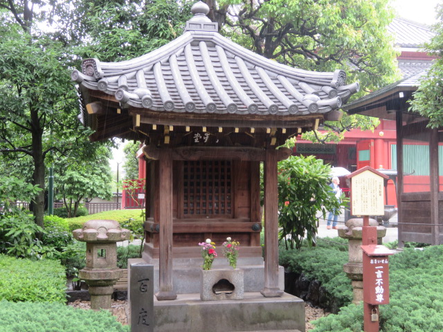 浅草観音の本堂西側にある薬師堂のそばにある小さなお堂です、享保10年(1725年)創建なので歴史があります、本尊は不動明王です、一つだけ願い事をするとかなうと言われているので一言不動尊と言われています、余計なことは言わず一言だけでお願いしました、そばにはいくつもの神社・お堂があります、人も多いでした。