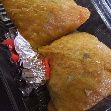 パッと見には普通のいなり寿司だが、中は蕎麦で詰まっている。