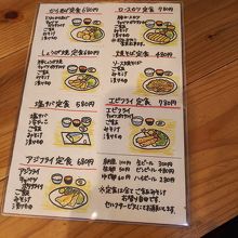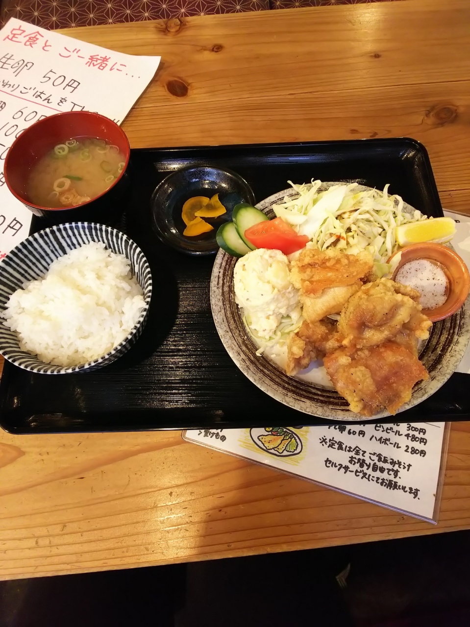 夜は居酒屋のランチ。メニューは定食が7つと小鉢単品な感じ。お味噌とご飯はお代わり自由で、男性方はお代わりに行く人多かったです。