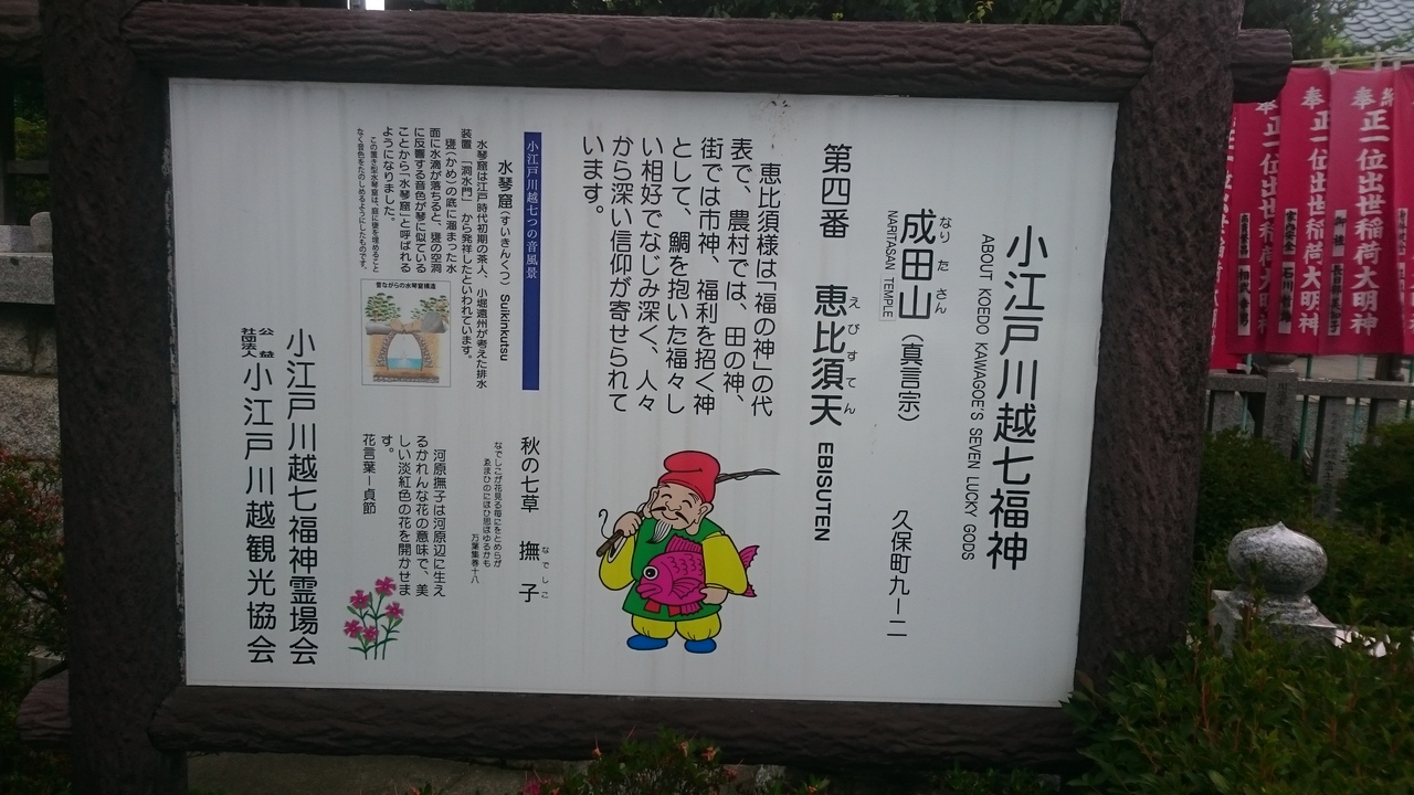 成田山別院には七福神めぐりの「恵比須天」が祀られています。「恵比須天」は人々に幸福をまたらす神として信仰されています。