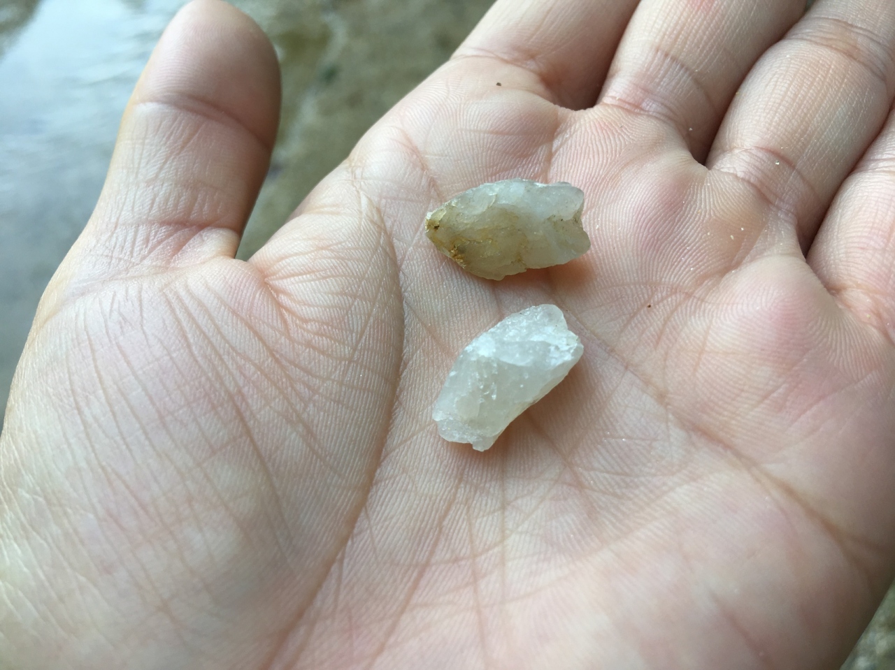 大きい石はほぼ見つけられず、やっと見つけた鉱石たち。でも、ド素人すぎて、トパーズなのか水晶なのか、ただの石なのか・・・。検索しても分からず。笑