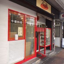 窓枠が赤で縁取られていて、目立つ店構えとなっている。