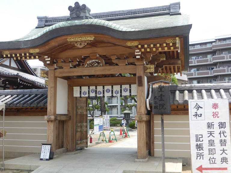 四天王寺の境内、中心伽藍をひと通り見学した後、縁日の露店を見て歩きウロウロしていたら聖霊院が目に付きました。聖徳太子を祀る堂で、太子堂とも呼ばれています。立派な門をくぐると中は綺麗に整備されたお庭があります。新天皇即位の記帳所が設けられていました。人も少なくゆっくりお参り出来ました。
