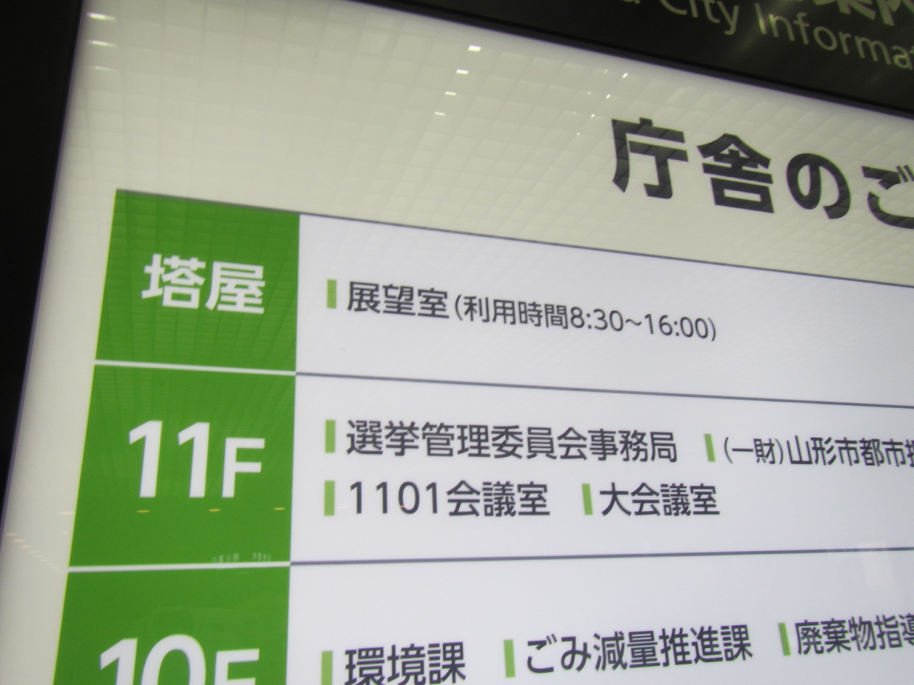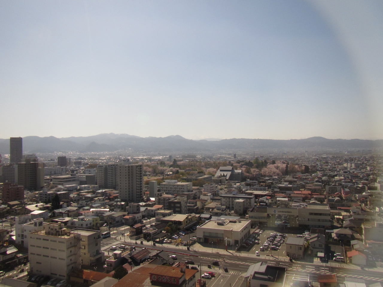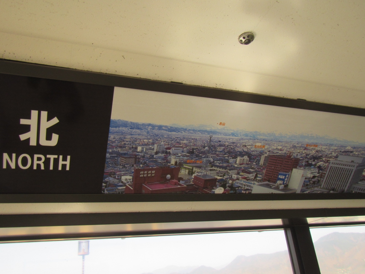 しかし、レストランなども入っていて、360°とはいかず、よく見えるのは山形駅などがある南側で、霞城公園などがある北側は、無料スペースはわずかしかありません。