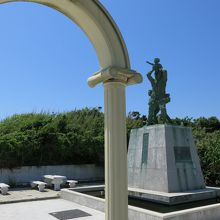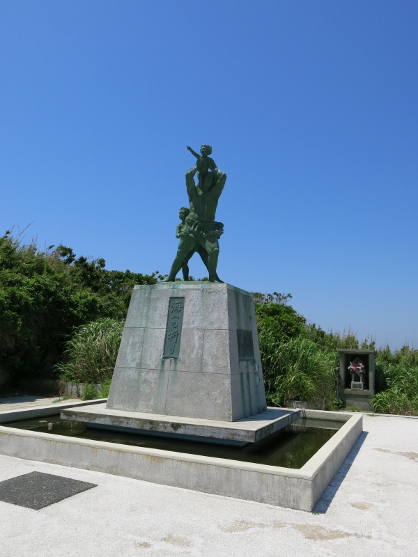 灯台から一段下がったところに妙なモニュメントがあります。「海への祈りの像」と言うらしいのですが、台座周辺に張られた水(雨水か?)はひどく澱んでいて、ボウフラの繁殖地になっていそうです。