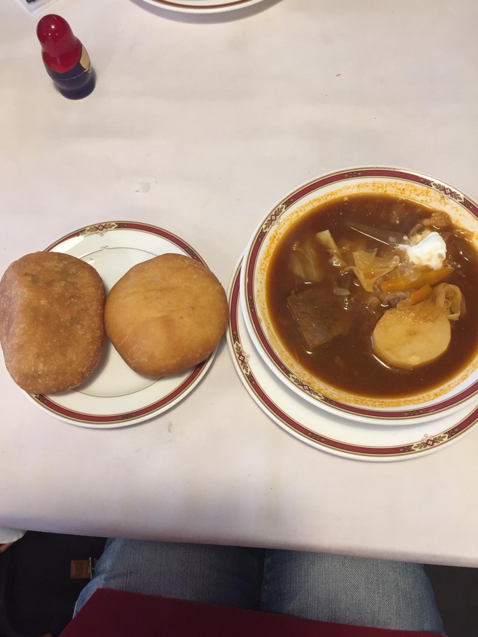 ピロシキはボリューム満点でベーカリーで売っている物とは違い、肉の味がしっかりしていて美味しい!ボルシチの肉は固かったです。