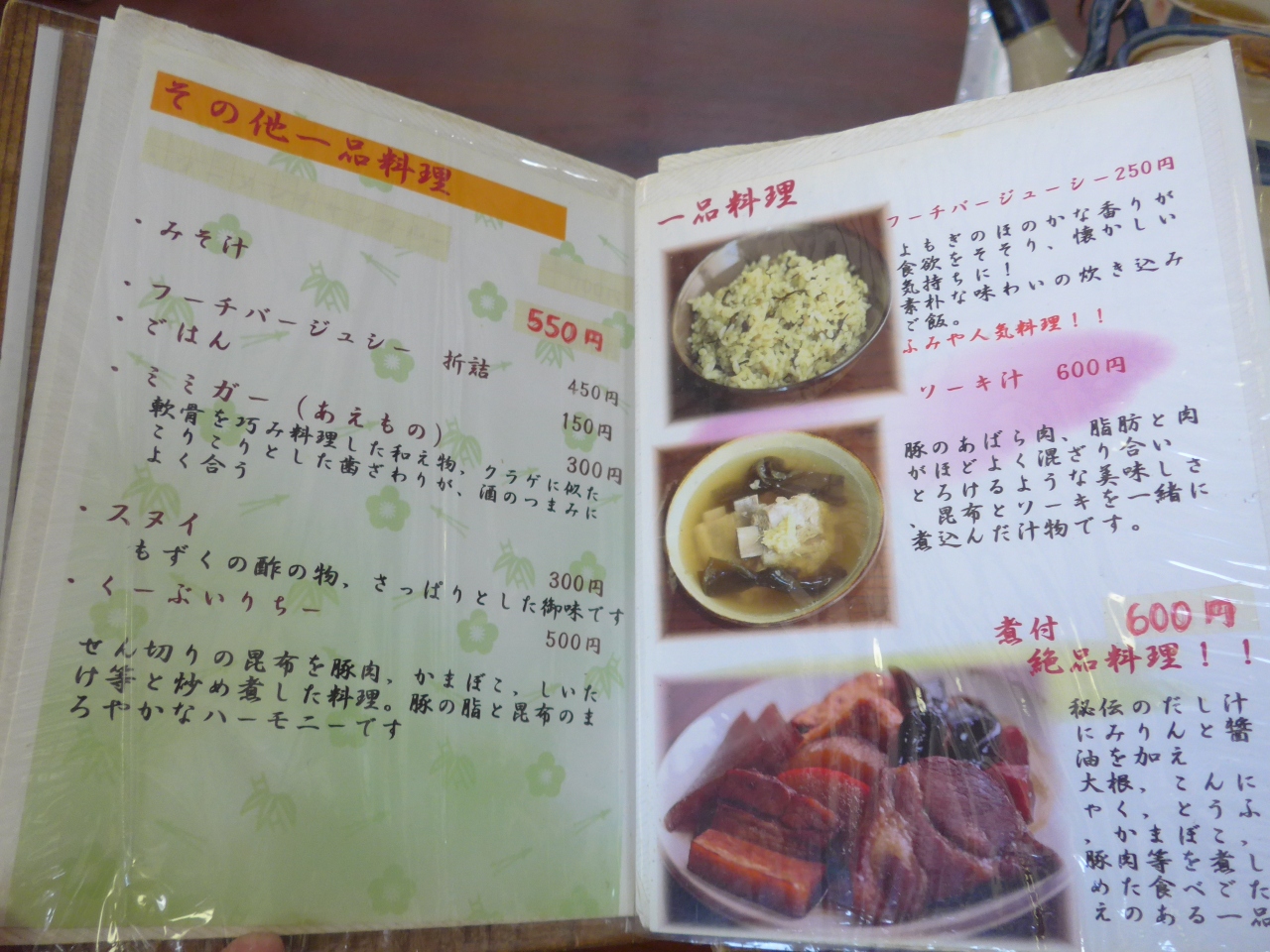 栃木から沖縄に訪れた友人と沖縄料理を食す事が出来るふみや本店さんを三度目の訪店となりました。今回はいつもの中味セットではなくて単品料理の「絶品煮つけ料理」と「フーチバジューシー」を頂きました。友人は残念ながら口に合う料理が無くてジーマーミ―豆腐とモズク酢を食していました。申し訳ないことをしてしまいました。