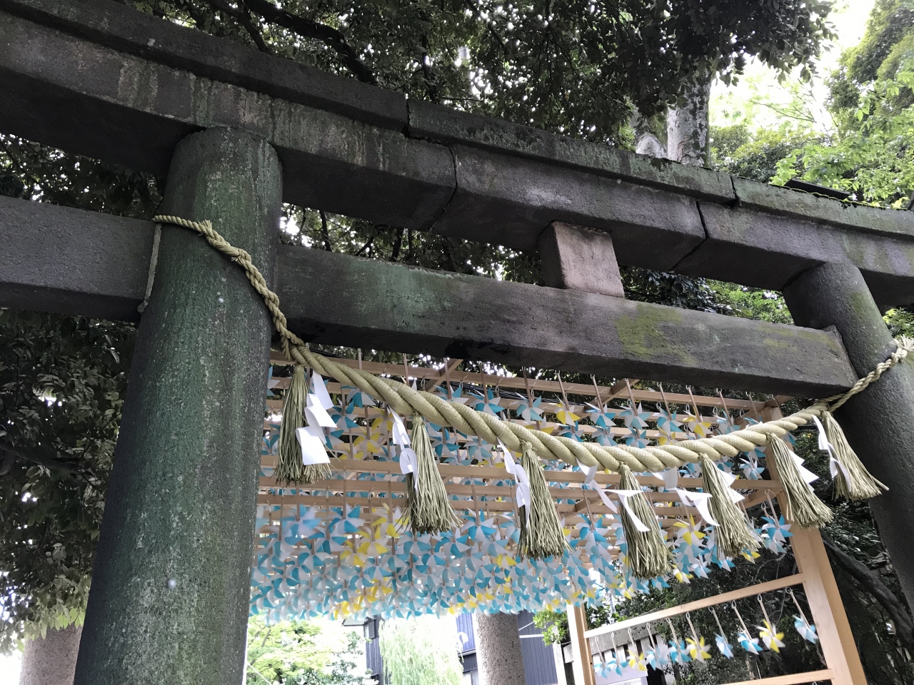 川越氷川神社は鳥居のすぐ横に風ぐるまがあり、とてもきれいでした。鳥居のすぐ横か道路なので、警備員さんがみえ、道路に出ないように声かけされてました。