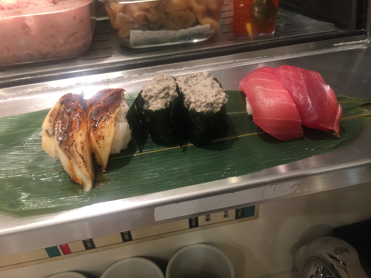 食べたのはマグロ赤身、蟹味噌、アナゴ、ビンチョウマグロ、タコをそれぞれ2貫で!972円でした。