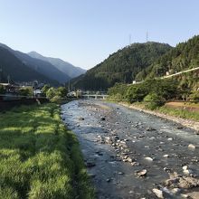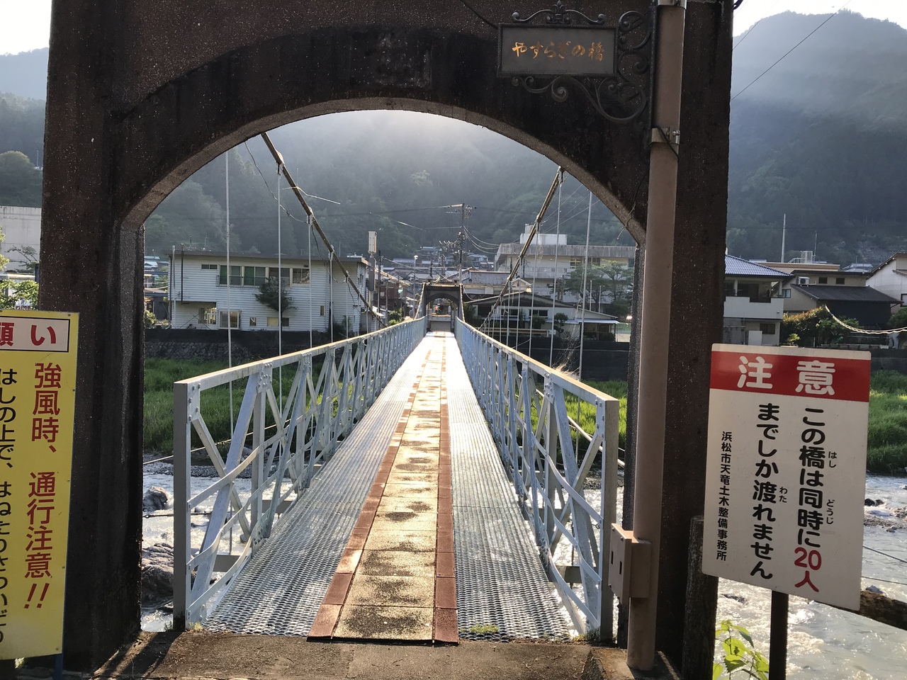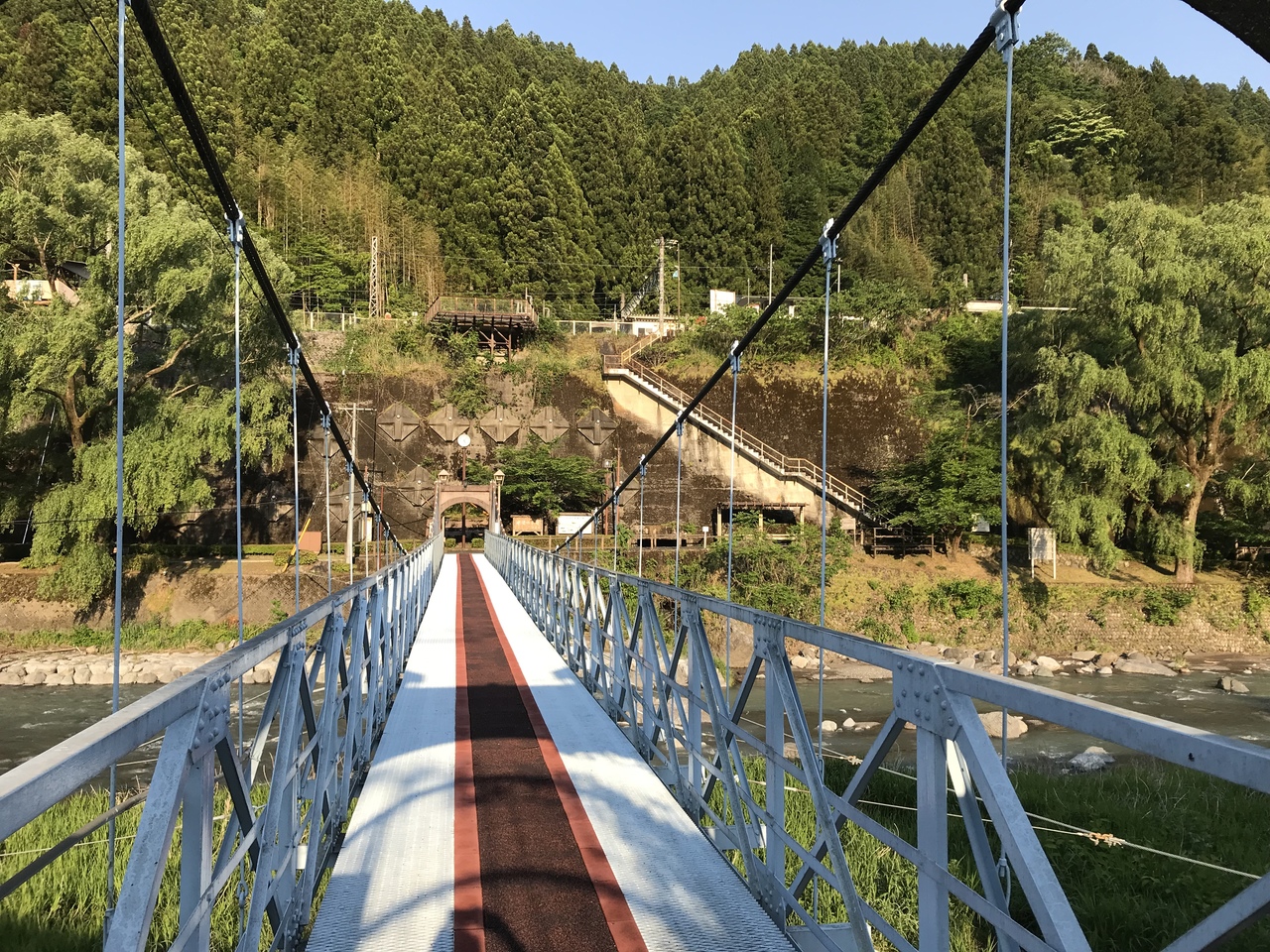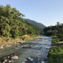 町に行くには坂を下り水窪川に架かる橋を渡る。