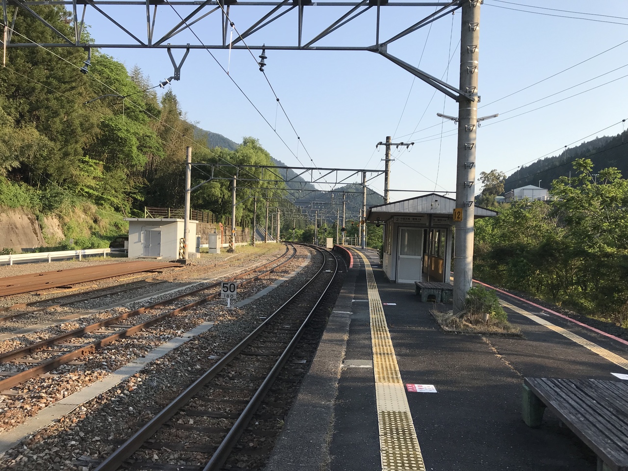 ここまでの川沿いの山の斜面に沿って走る、人影を感じない山深い車窓を眺めきただけに、町という実感を強く抱いた。