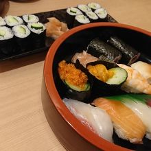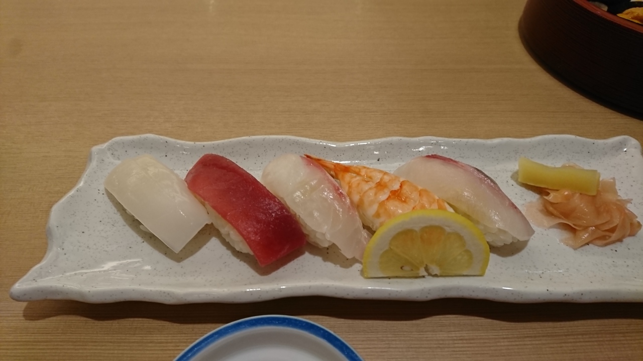 空港で夕食を食べる時にはラーメン店などは行列が出来ていました。さっぱりお寿司もいいかと思い博多に本店があるのお店のようで入りましたが、席にも余裕があり雰囲気もゆっくりできるお店でした。厳選5種を食べましたが美味しかったです、ただちょっとかっぱ巻きの握りがあまくて持ち上げると開いてしまったのが残念でした。