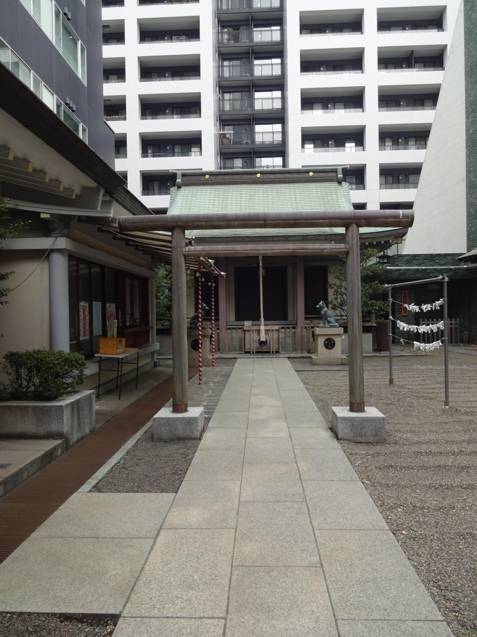 社殿の背後は高いビルで、都会の神社なので仕方がないでしょうが、ちょっとありがたみが薄れるような…。
