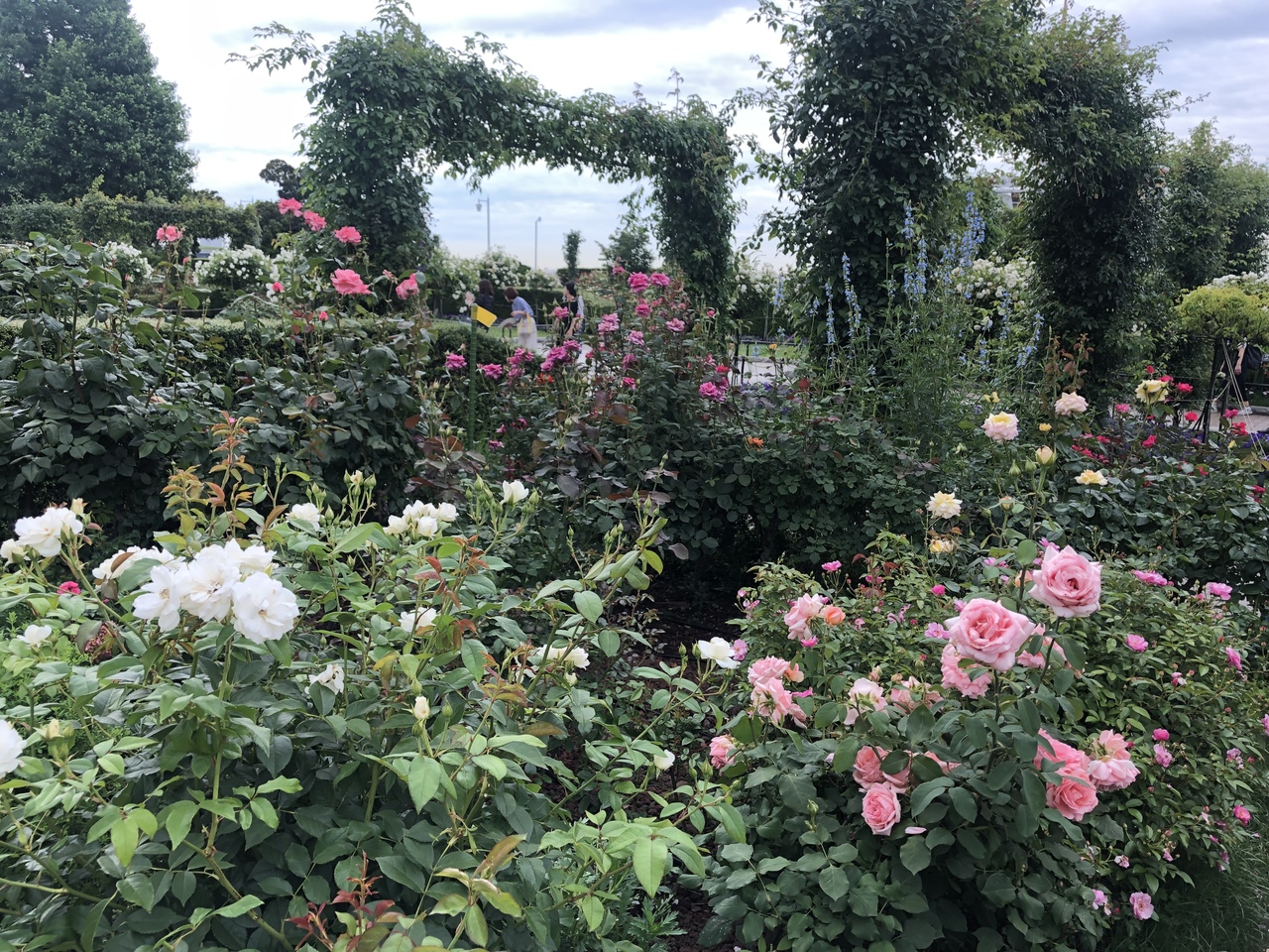 サンクン・ガーデンは少し前から現代っぽい様式のローズガーデンに整えられて、トピアリーやアーチなど、高さのある展示が楽しめるようになっています。説明版にはバラだけではなく、合わせて植えられている季節の花々の説明もあるのでとても分かりやすいと思います。もう少し、エリア内でくつろげるようなベンチやコーナーがあったらもっといいなと思いますが、大人気の公園なので難しいのかな・・・