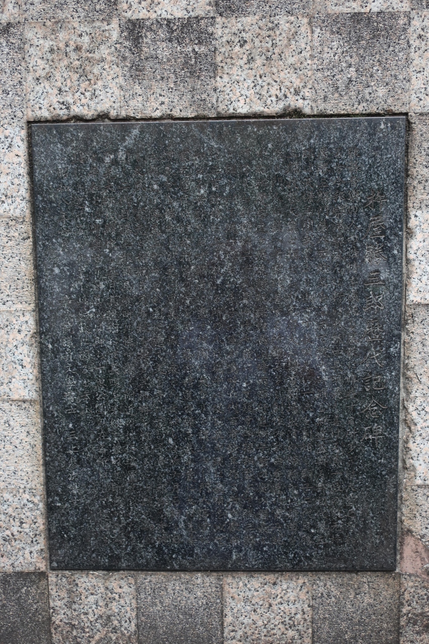 小伝馬町駅に近い十思公園の片隅に二つのが建てられています。一つが「吉田松陰終焉の地」、そしてもう一つが「杵屋勝三郎歴代記念碑」。近寄っても見づらいですが、市松模様の石に三味線が描かれています。杵屋勝三郎は現在も続く長唄三味線方の名跡です。