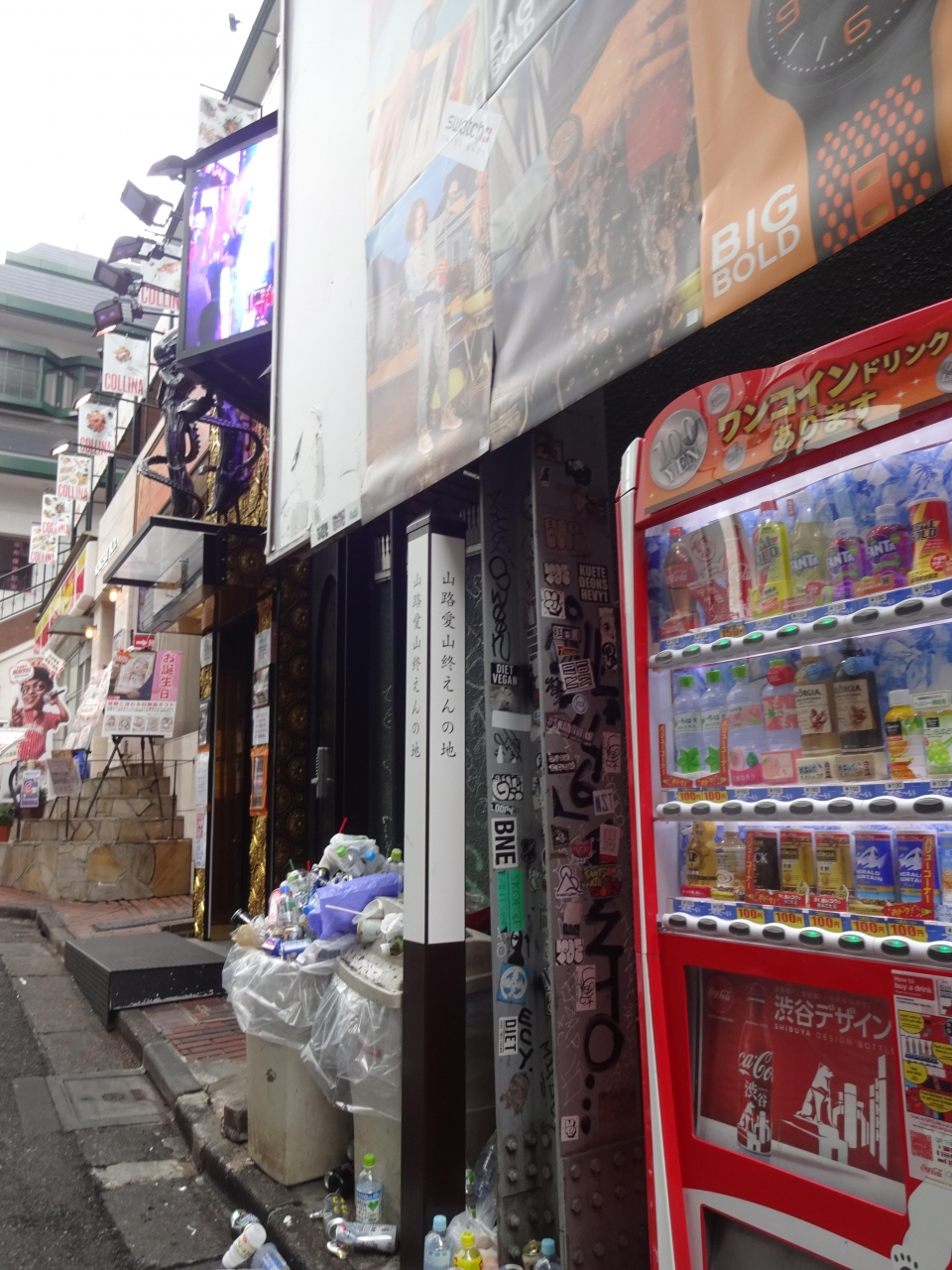 自動販売機、ゴミ箱などが置かれ、落書きなどが描かれた雑然とした一角に、この木製の碑がたっていました。