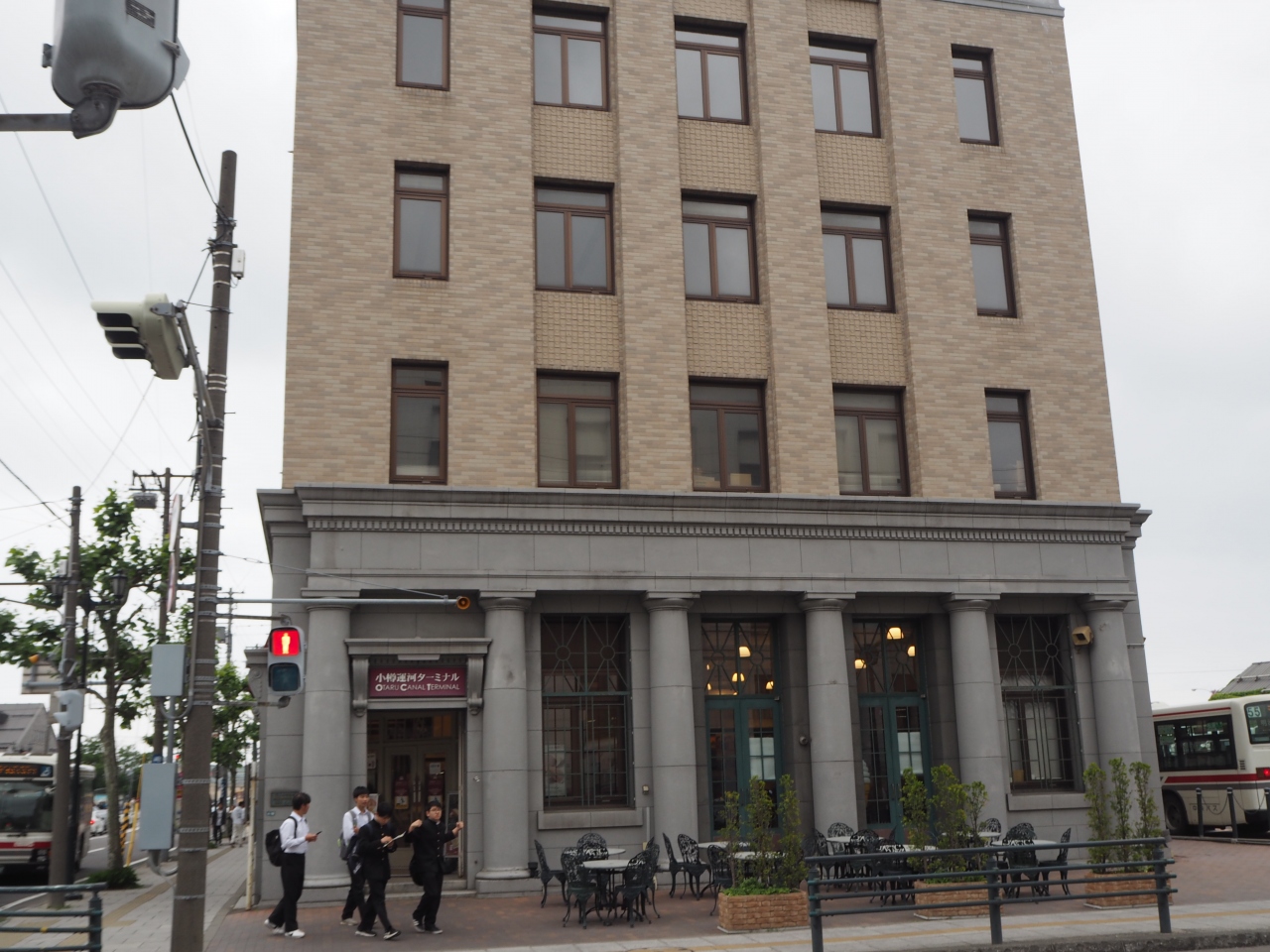 小樽市街地のかつての銀行などの建物がならぶ一角に小樽運河ターミナルビルはあります。建物は旧三菱銀行の小樽支店であったものです。1階部分はかつての状態を保存したもので、2階から4階部分はあらたに建設されたもののようです。東京駅の丸の内の郵貯のビルと同じ建築形態のようです。オリジナルの1階の外壁にあるドーリア式の列柱は風格を感じさせています。なかはお土産店です。