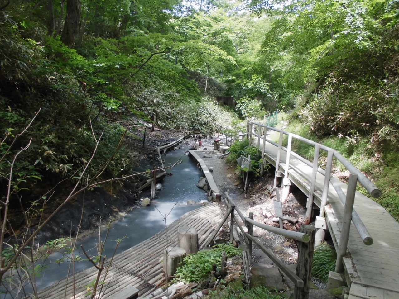 秘湯といっても、全身浴はできませんが、森林浴をしながらとても素晴らしい秘湯だと思います。上流の大湯沼からの温泉が流れ込む(流れ込むというより、流れる)100%のかけながし、塩素消毒が無しという野湯になります。